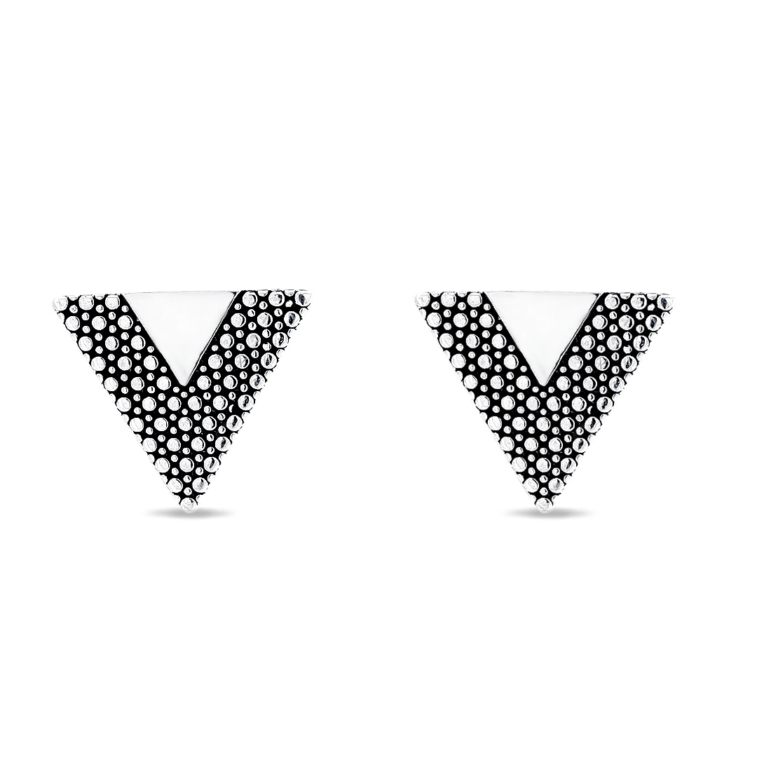 Brinco top em formato de triângulo com trabalhado envelhecido.