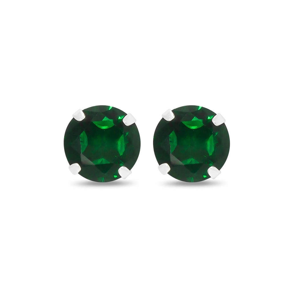Brinco top com zircônia esmeralda em formato redondo.