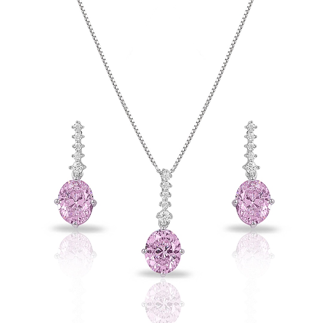 Colar Blend Collection de Prata 925 com Brincos de Zircônias Rosa Oval