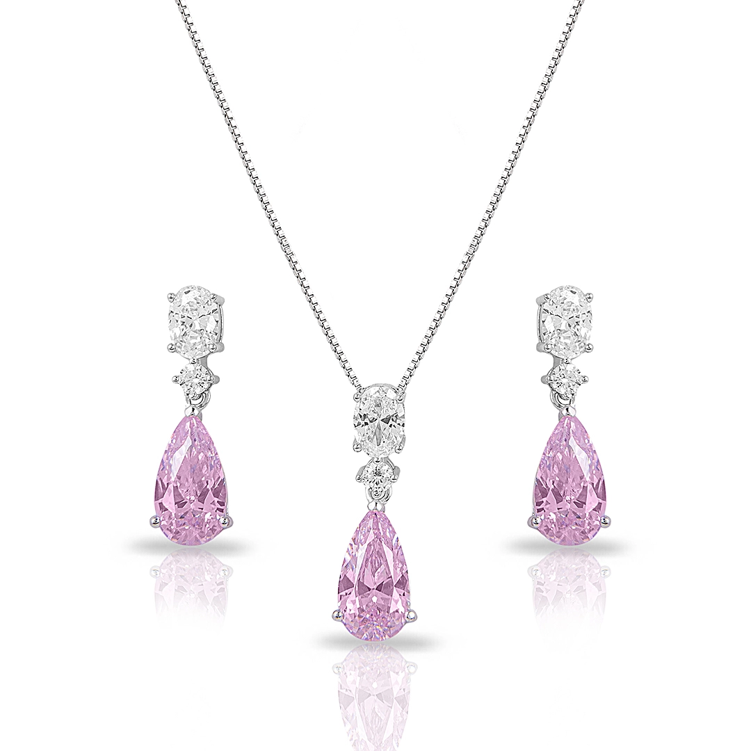 Colar Blend Collection de Prata 925 com Brincos Gota de Zircônias Rosa e Cristal