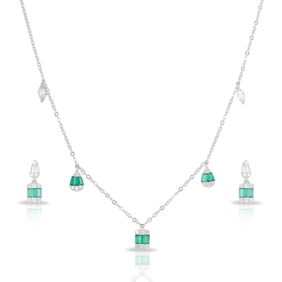Colar de Prata Blend Collection com Brincos em Zircônias Cristal e Esmeralda