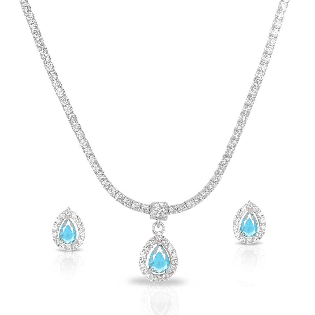 Colar de Prata Blend Collection com Brincos Gota de Zircônias Cristal e Topázio