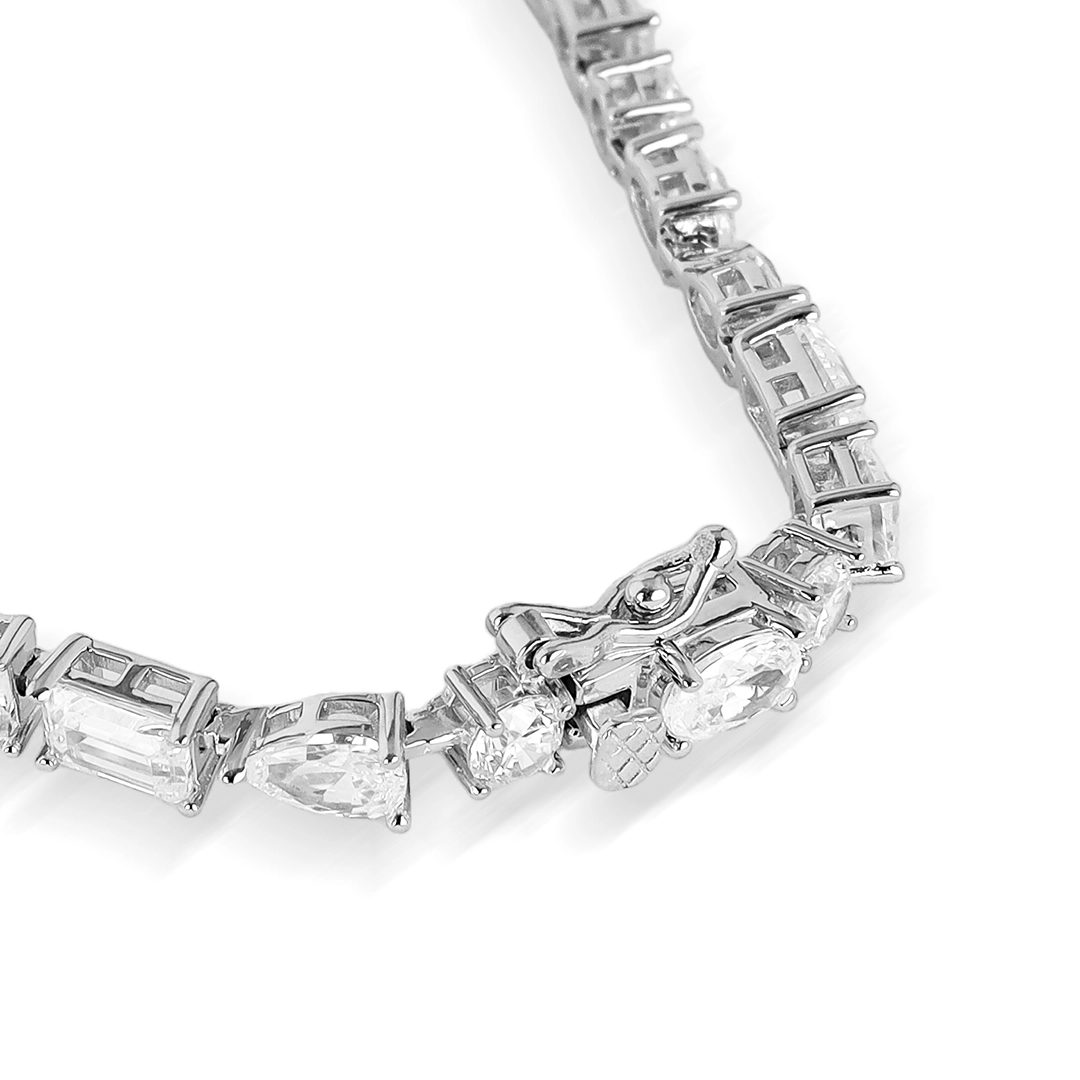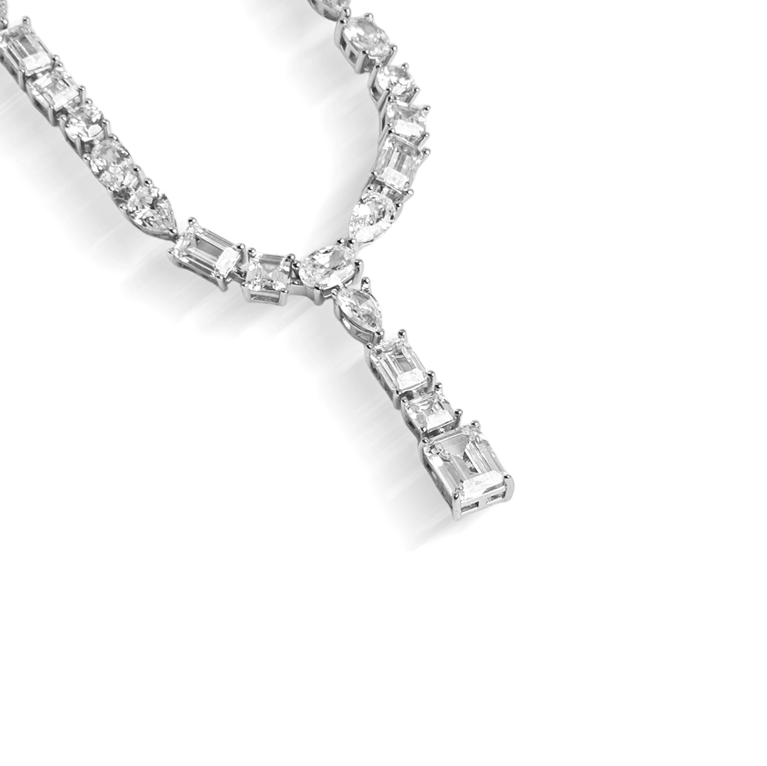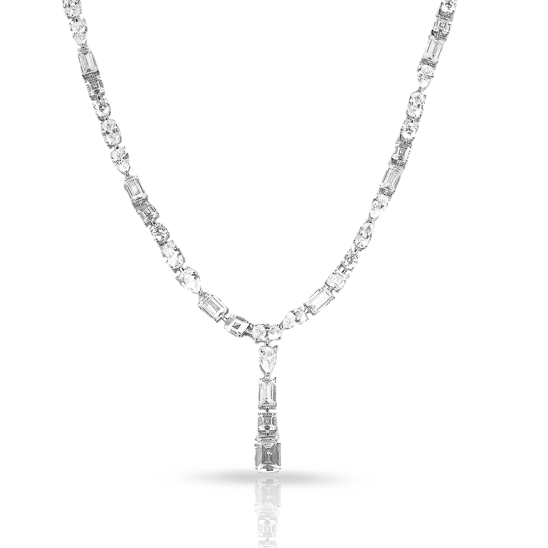 Colar com zircônias cristal em formatos geométricos quadrado, retangular, gota, oval e redondo.