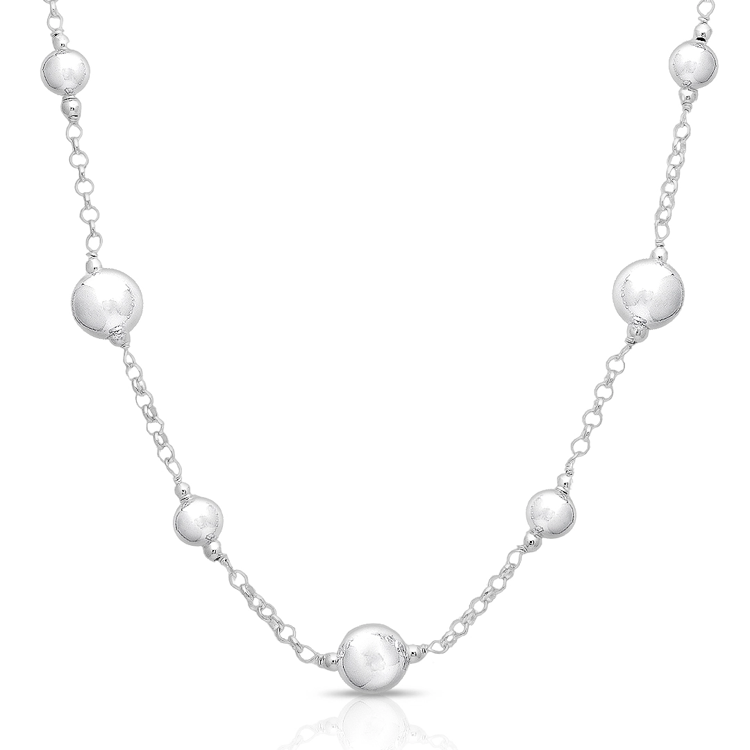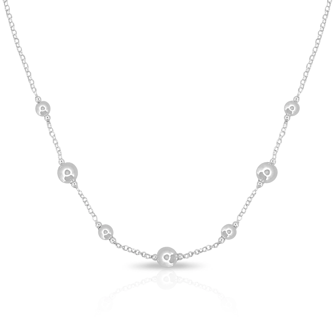 Colar em malha de elos iguais com esferas P e M espelhadas.