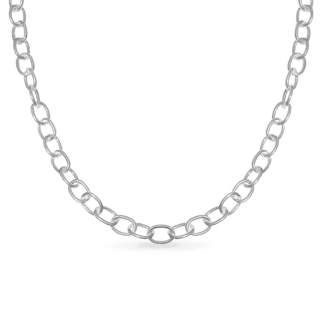 Colar de Prata Leve com Elos Ovais Espelhados