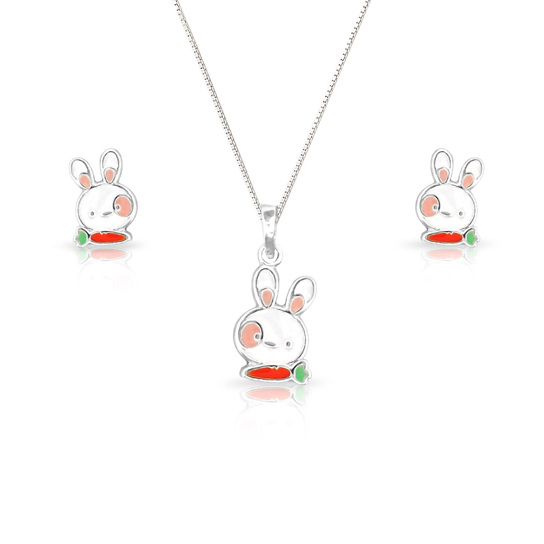 Conjunto de Prata Leve Kids Coelho Esmaltado