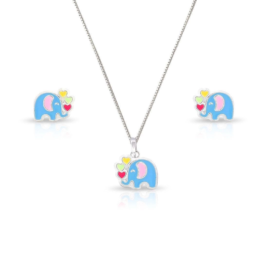Conjunto de Prata Leve Kids com Elefante Azul