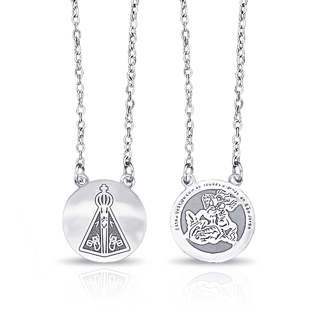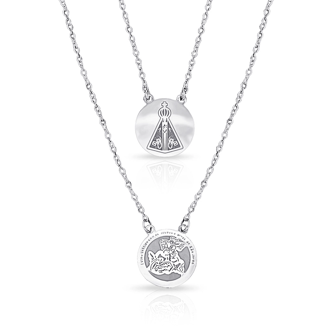 Escapulário de Aço com Medalhas de Nossa Senhora Aparecida e São Jorge