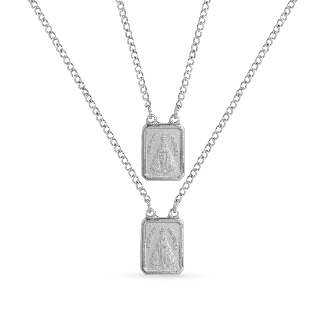Escapulário de Aço Medalha Retangular com Nossa Senhora Aparecida