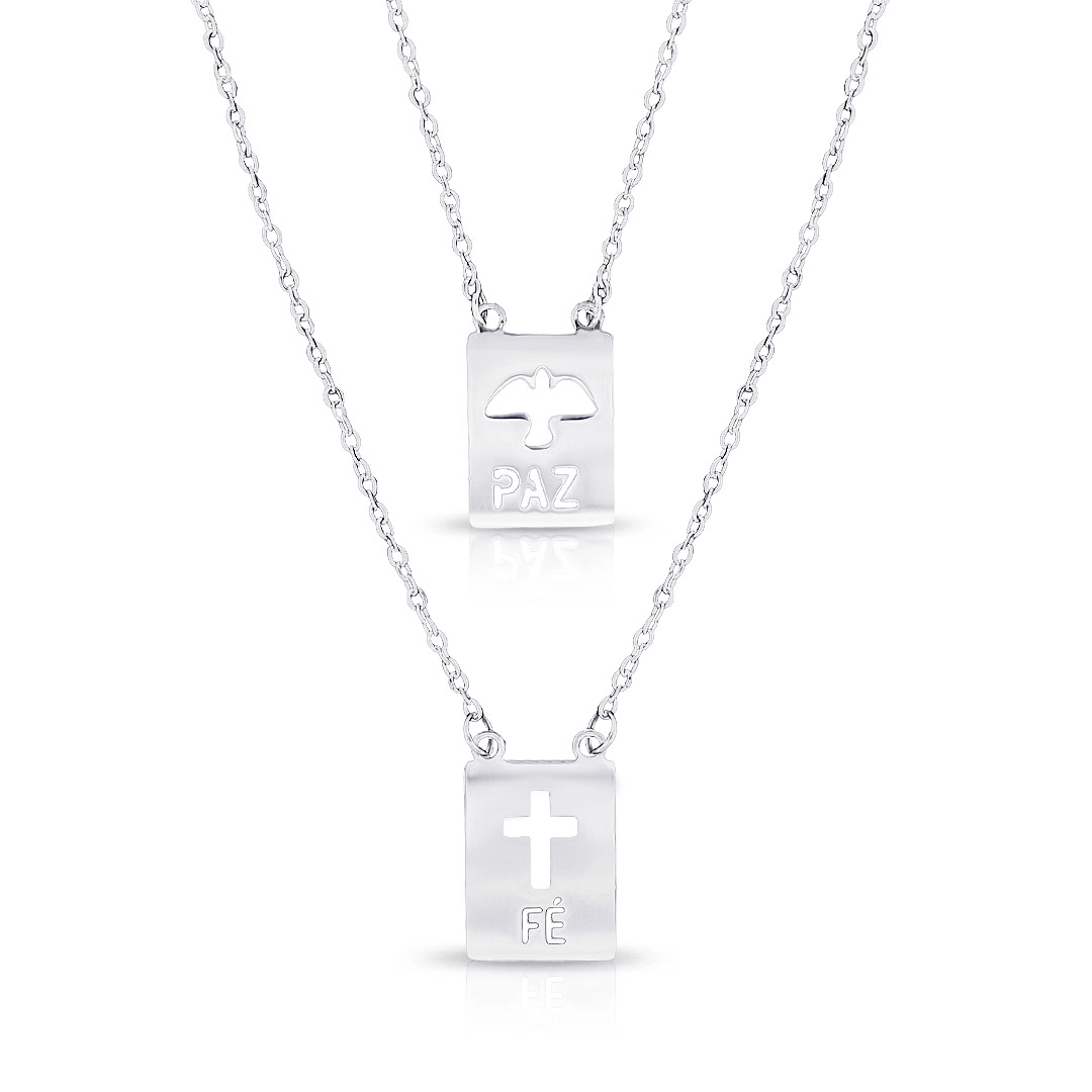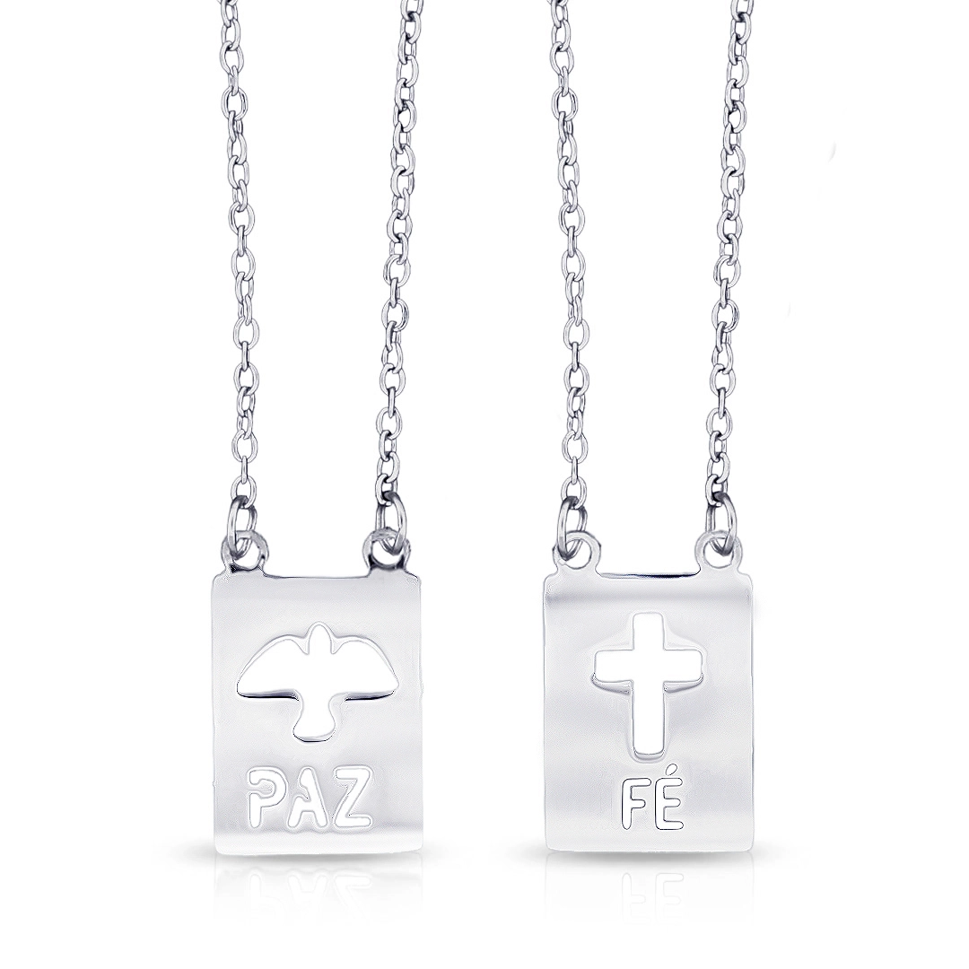 Escapulário de Aço Medalha Retangular Fé e Paz