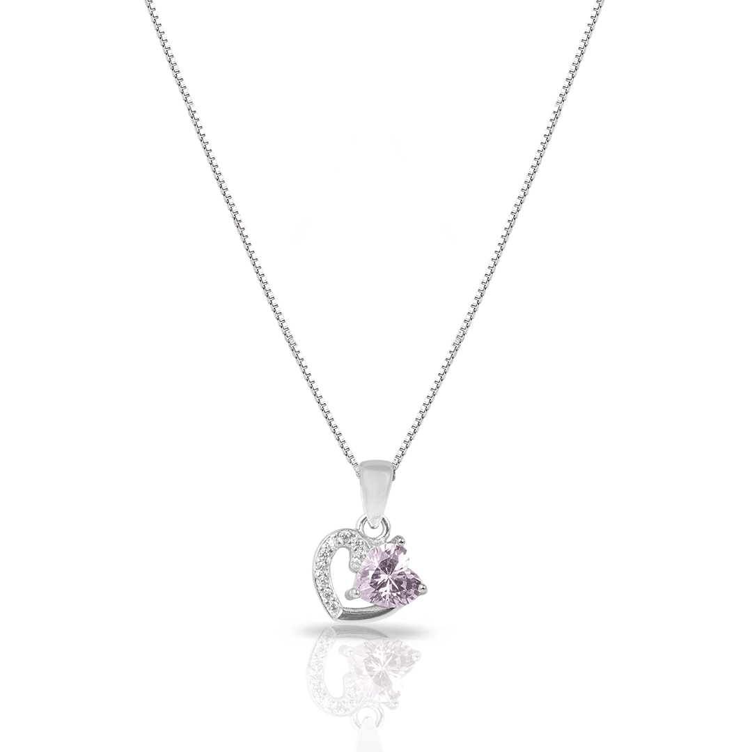 Gargantilha Blend Collection de Prata 925 Corações com Zircônias Rosa e cristal