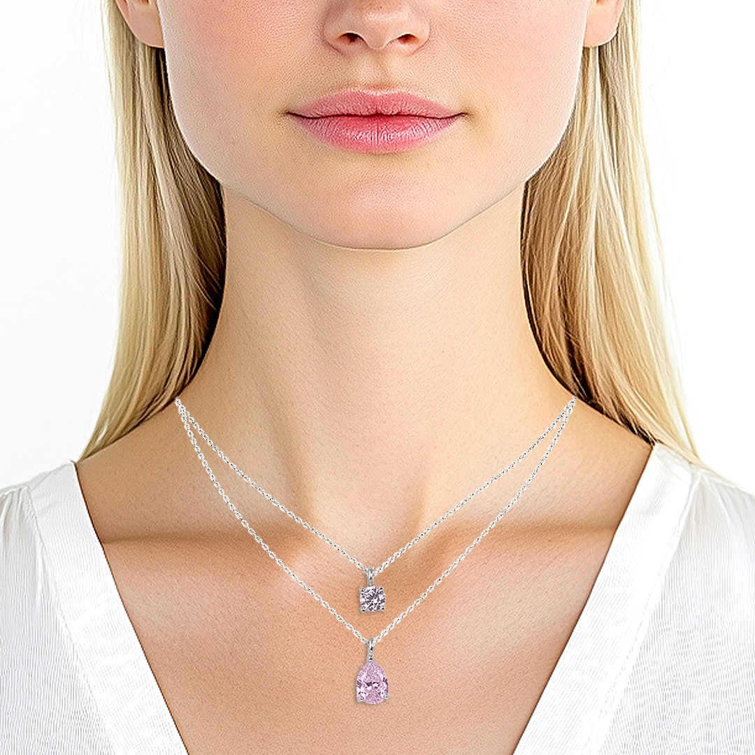 Gargantilha Blend Collection de Prata 925 Dupla Com Zircônias Rosa