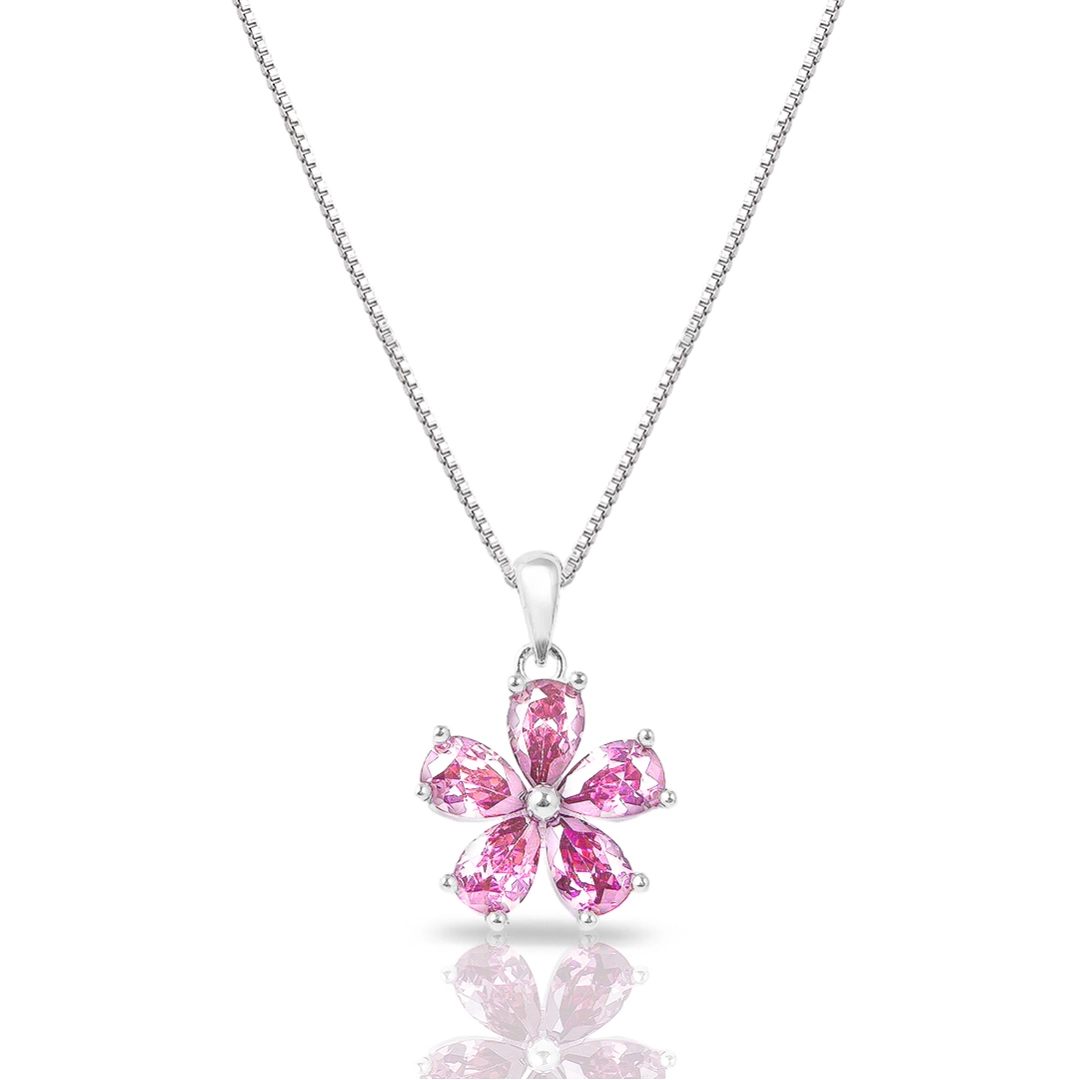 Gargantilha Blend Collection de Prata 925 Flor Com Zircônias Rosa