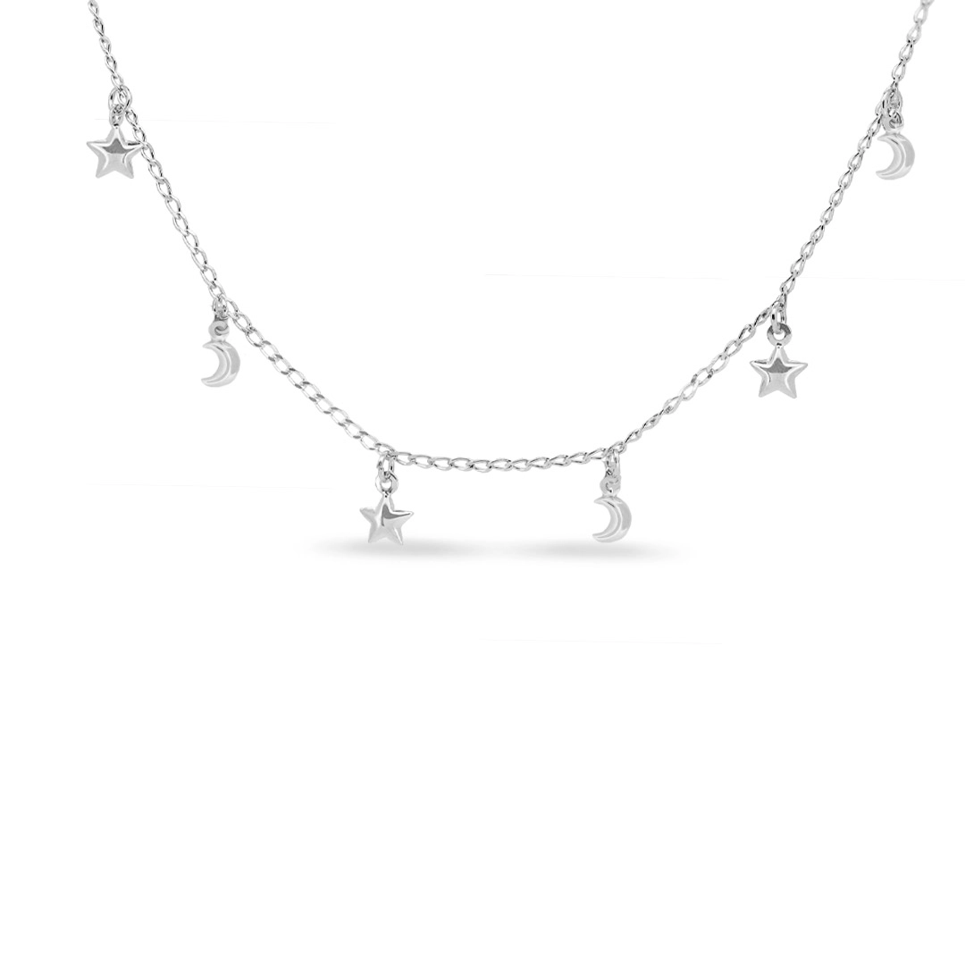 Tornozeleira de Prata com Esferas e Estrela Espelhada