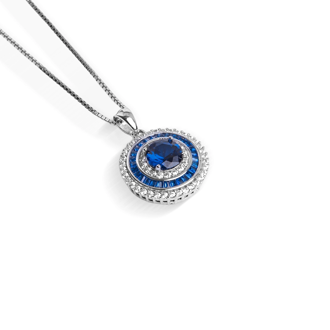 Gargantilha de Prata Blend Collection com Pingente Redondo de Zircônias Safira e Cristal