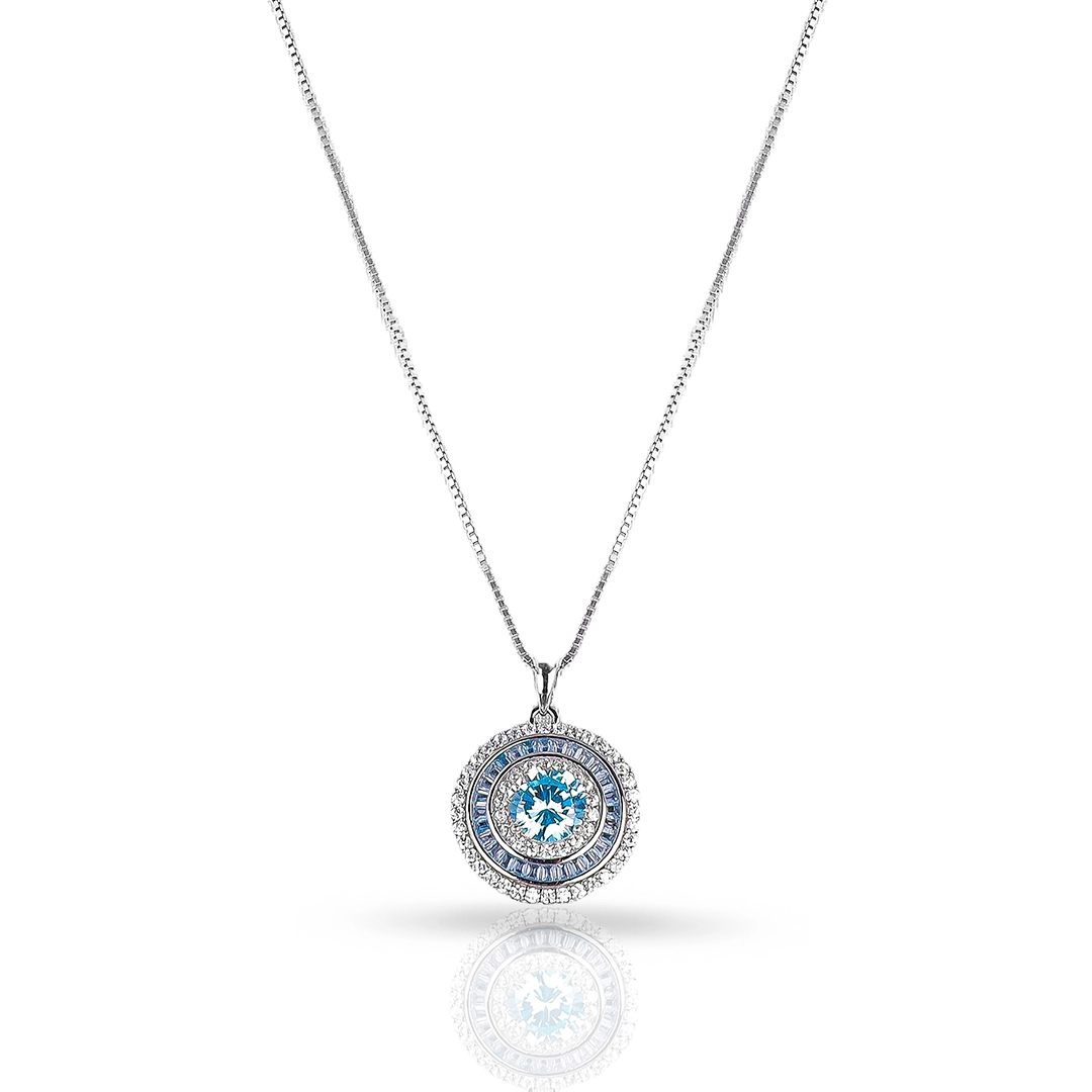 Gargantilha de Prata Blend Collection com Pingente Redondo Em Zircônias Topázio e Cristal