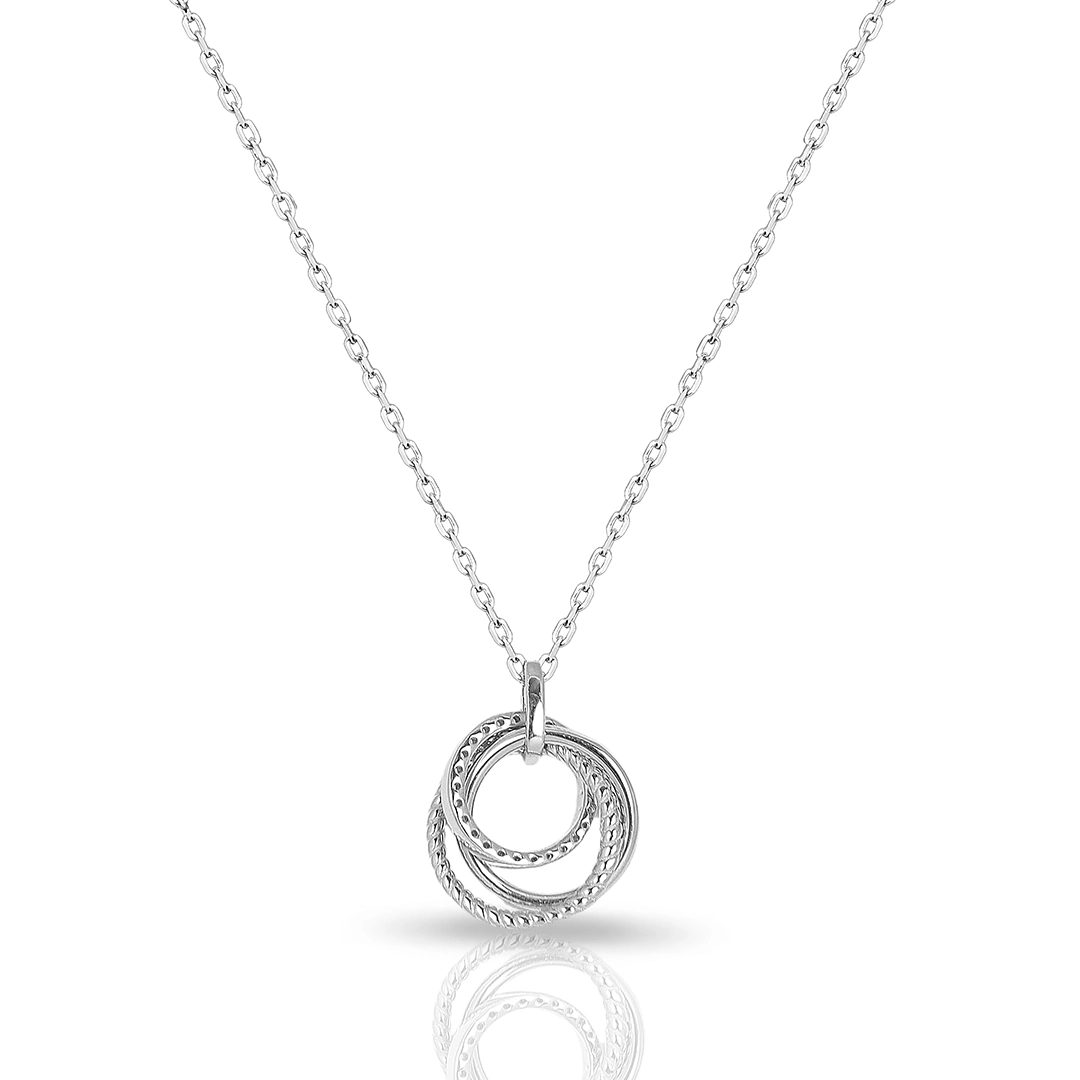 Gargantilha de Prata Blend Collection Com Pingente Três Argolas de Zircônias Cristal Cravejadas