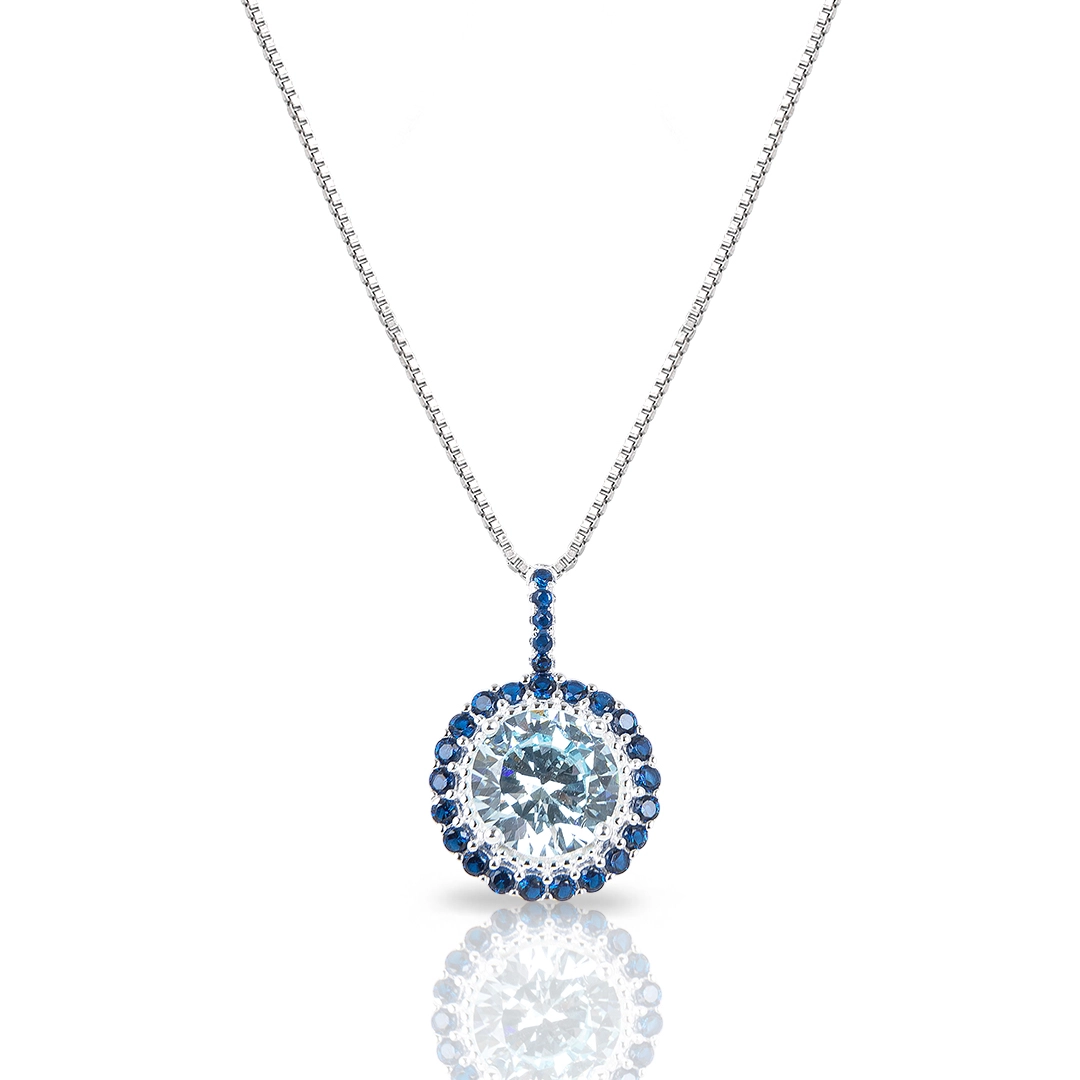 Gargantilha de Prata Blend Collection com Zircônia Topázio Redonda e Safira