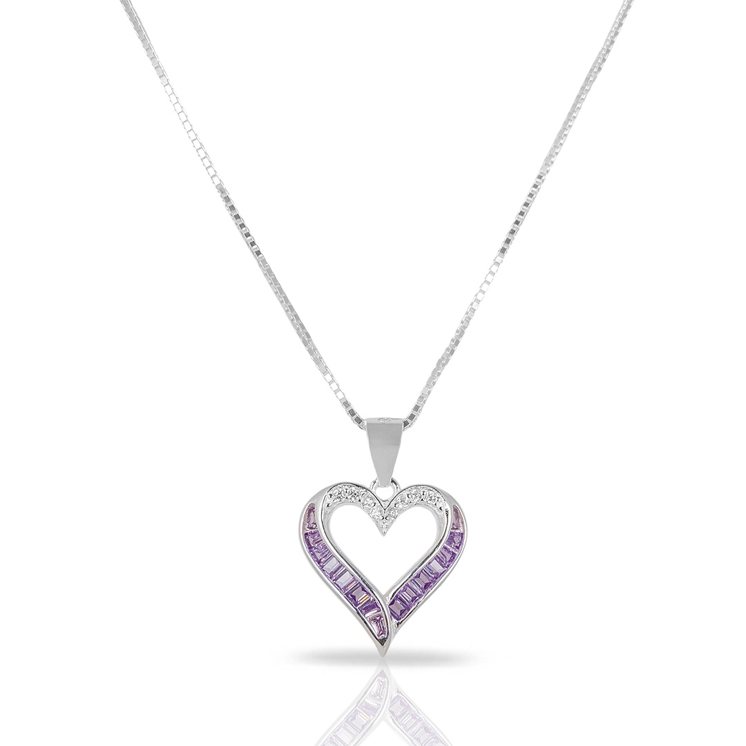 Gargantilha de Prata Blend Collection Coração Com Zircônias Ametista e Cristal