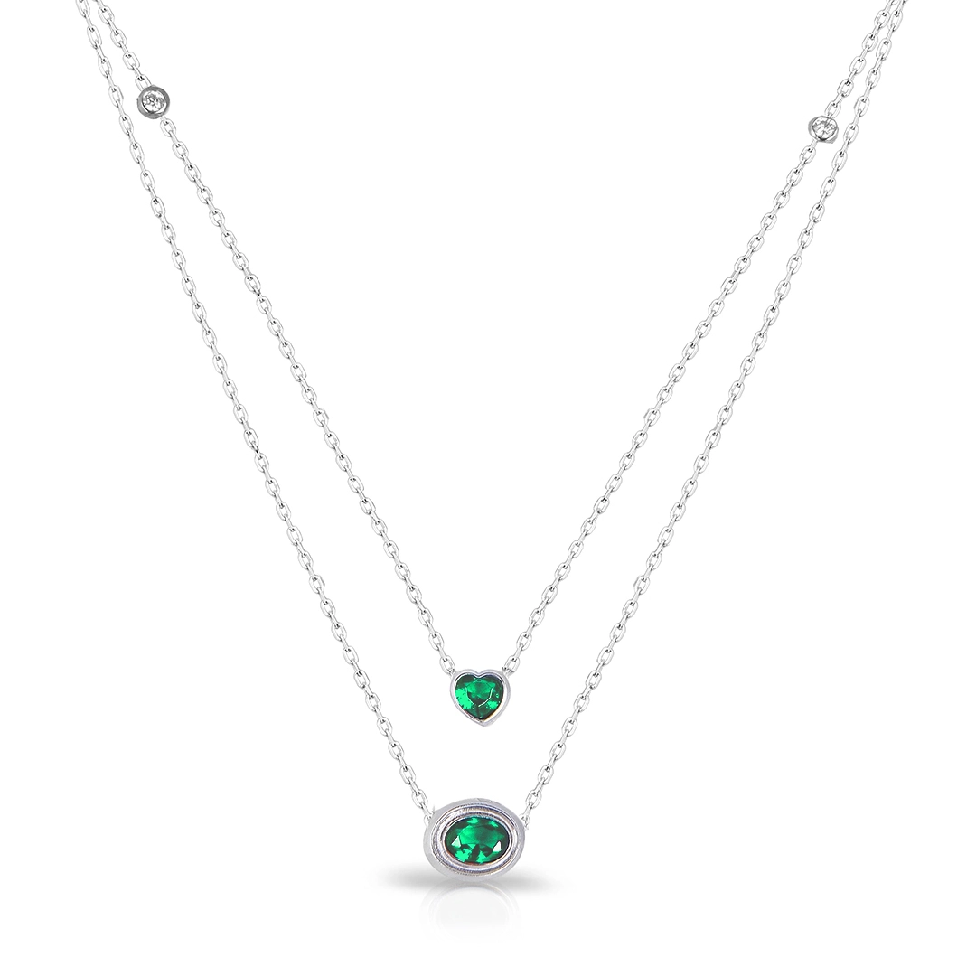 Gargantilha de Prata Blend Collection Dupla com Zircônias Esmeralda Oval e Coração