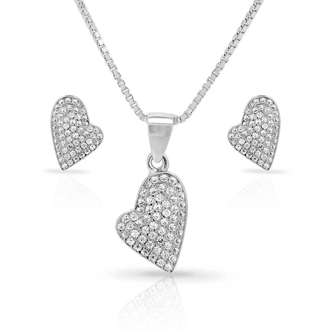 Gargantilha de Prata com Brincos Top e Pingente de Coração Estilizado