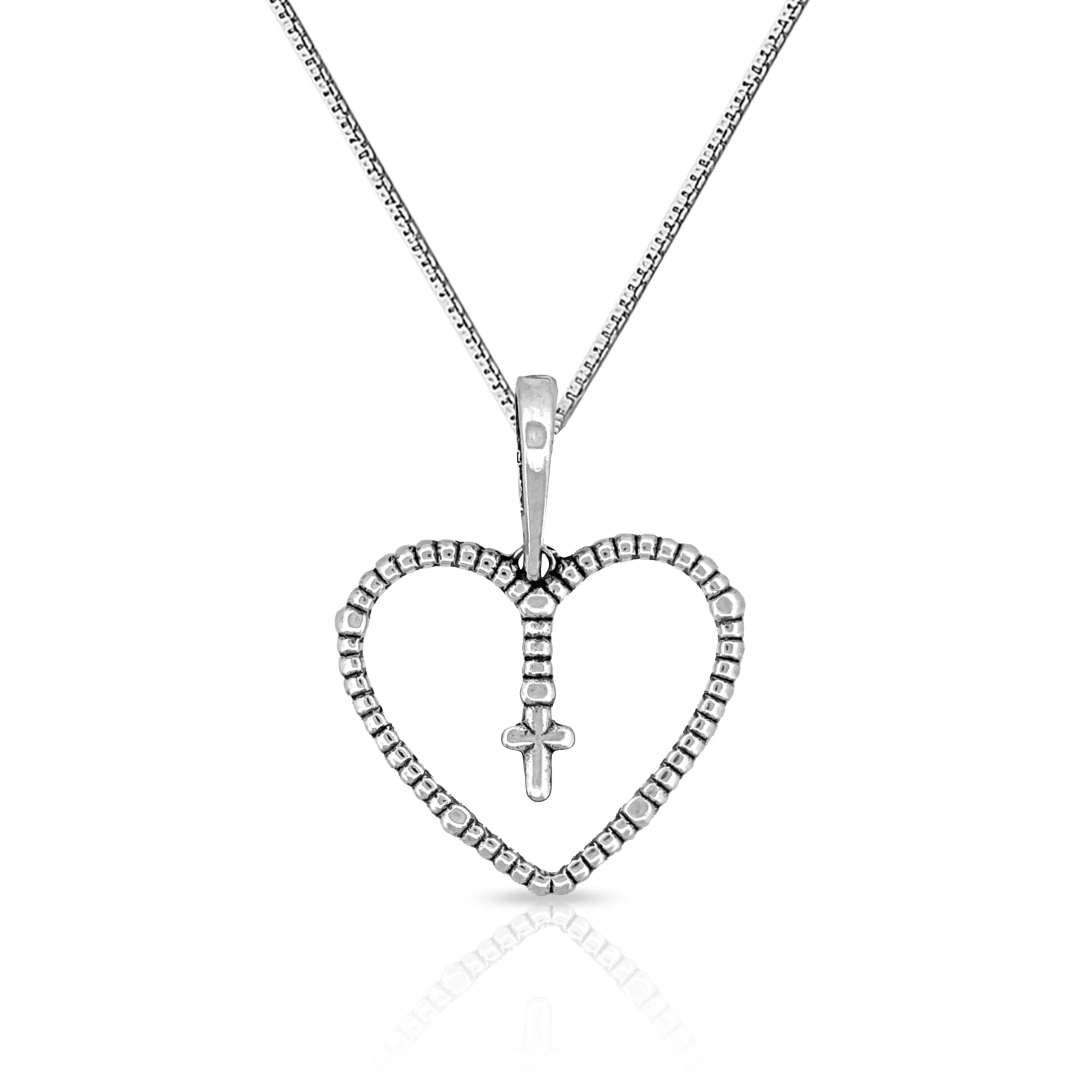 Gargantilha de Prata Coração Envelhecido com Cruz