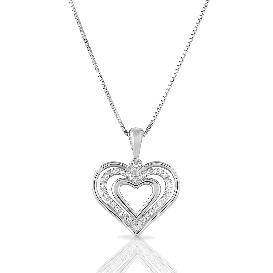Gargantilha De Prata Coração Triplo Com Zircônia Cristal