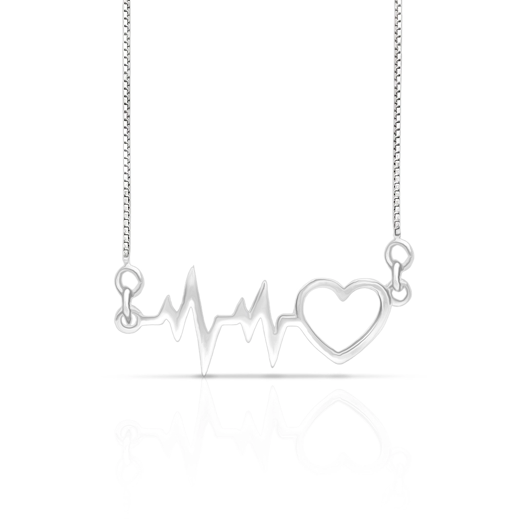 Gargantilha de Prata Espelhada com Coração e Batimentos
