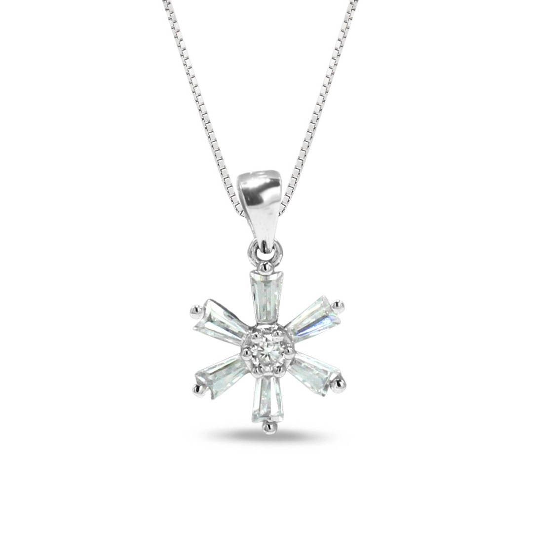 Gargantilha de Prata Flor com Zircônia Cristal Retangular