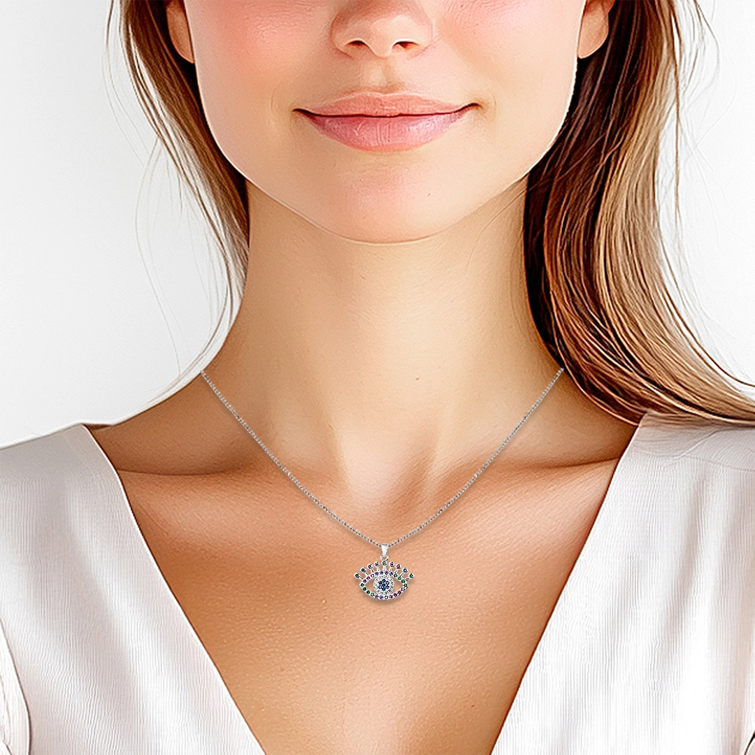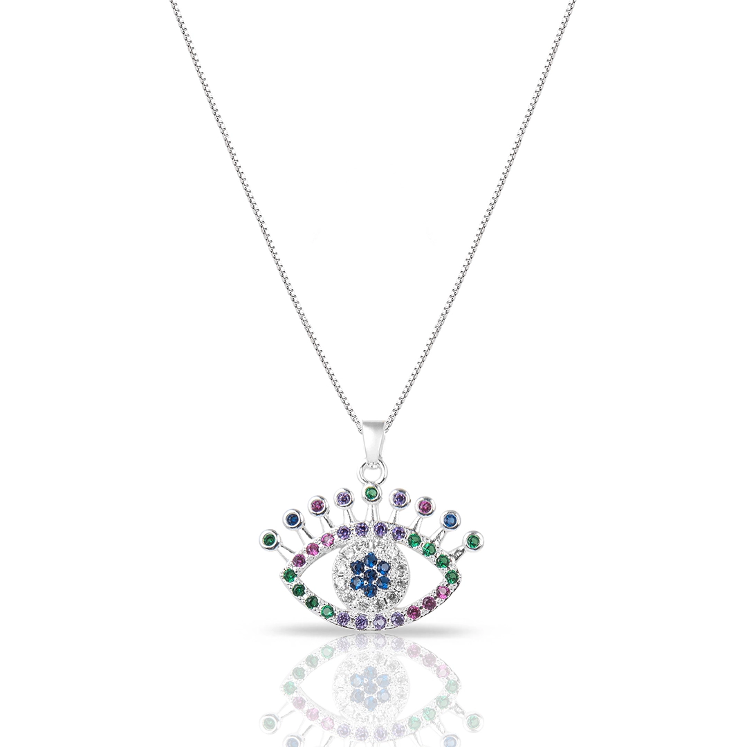 Gargantilha De Prata Leve Olho Grego Com Zircônias Coloridas