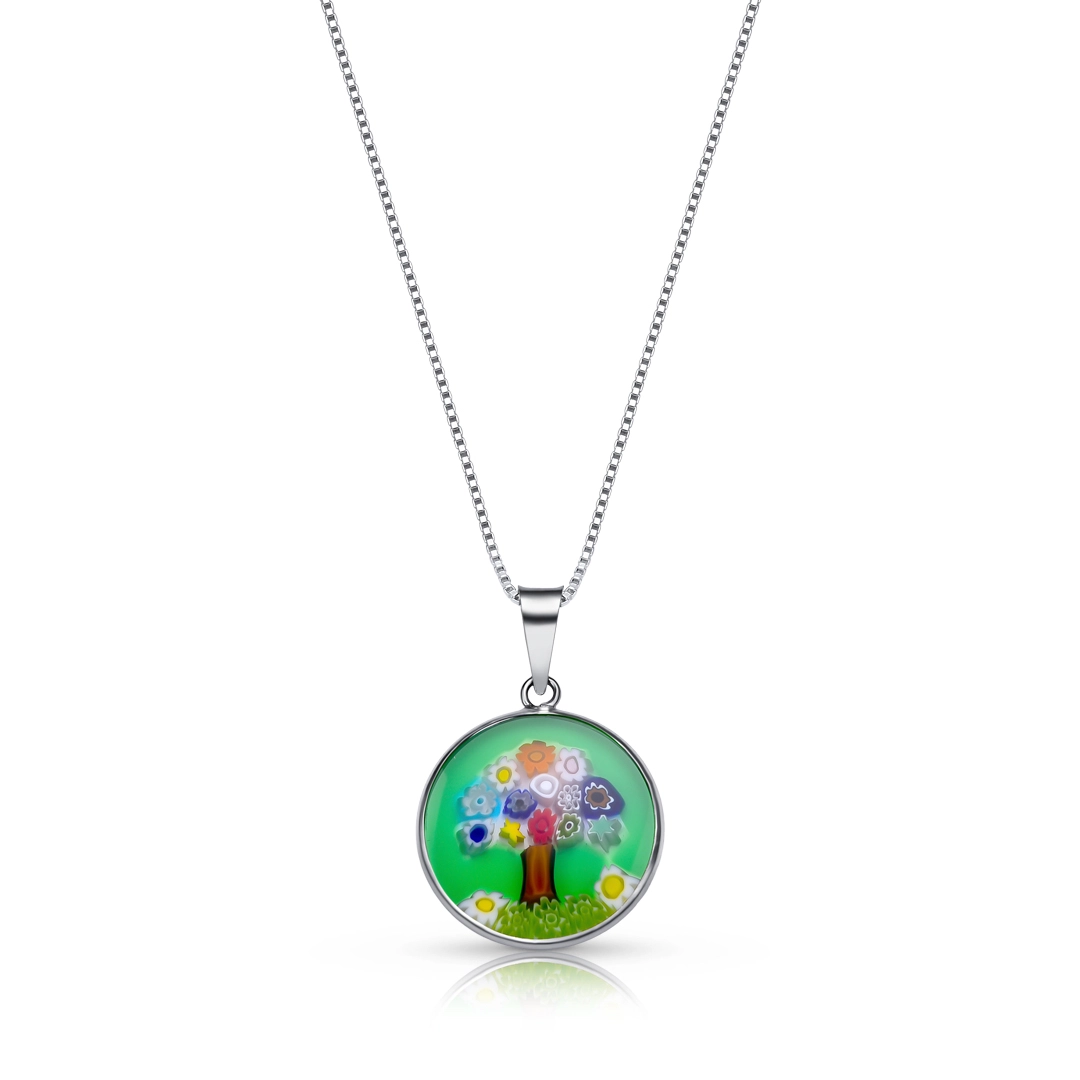 Gargantilha em Prata com Murano Verde e Árvore da Vida