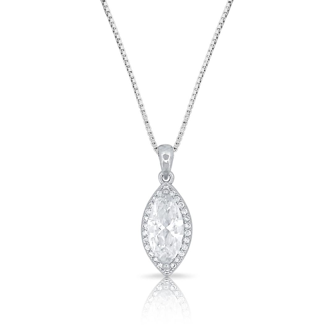 Gargantilha em Prata com Pingente Navete de Zircônias Cristal