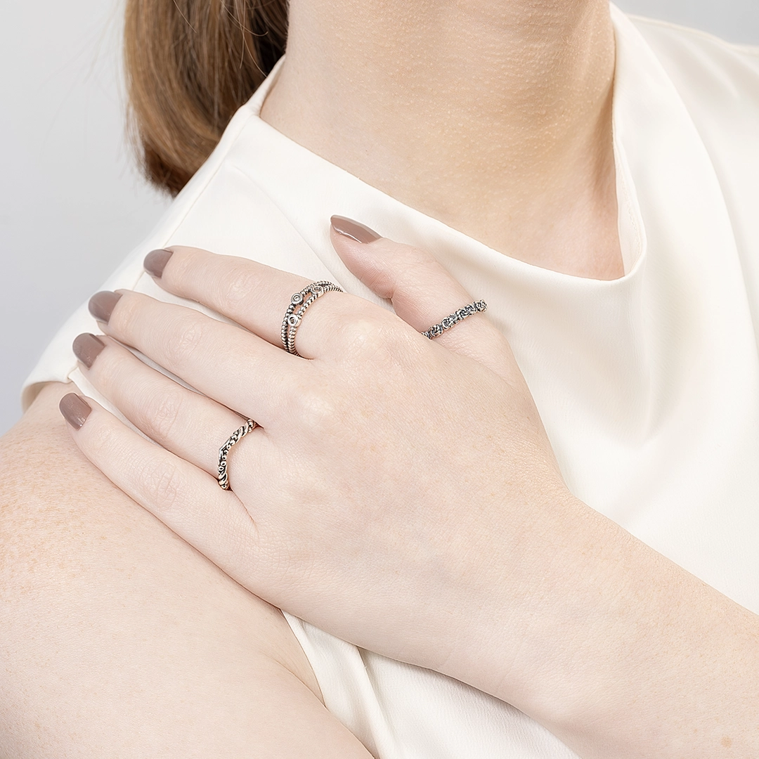 - Anel De Prata Symbol Com Aro Duplo E Zircônias Cristal