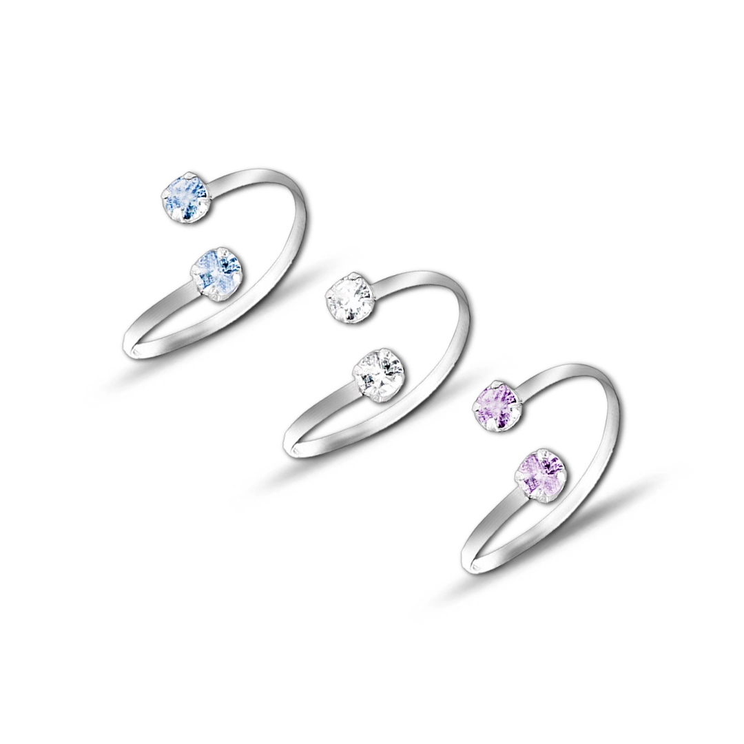 Kit De Anéis De Prata Ponto Luz Coloridos