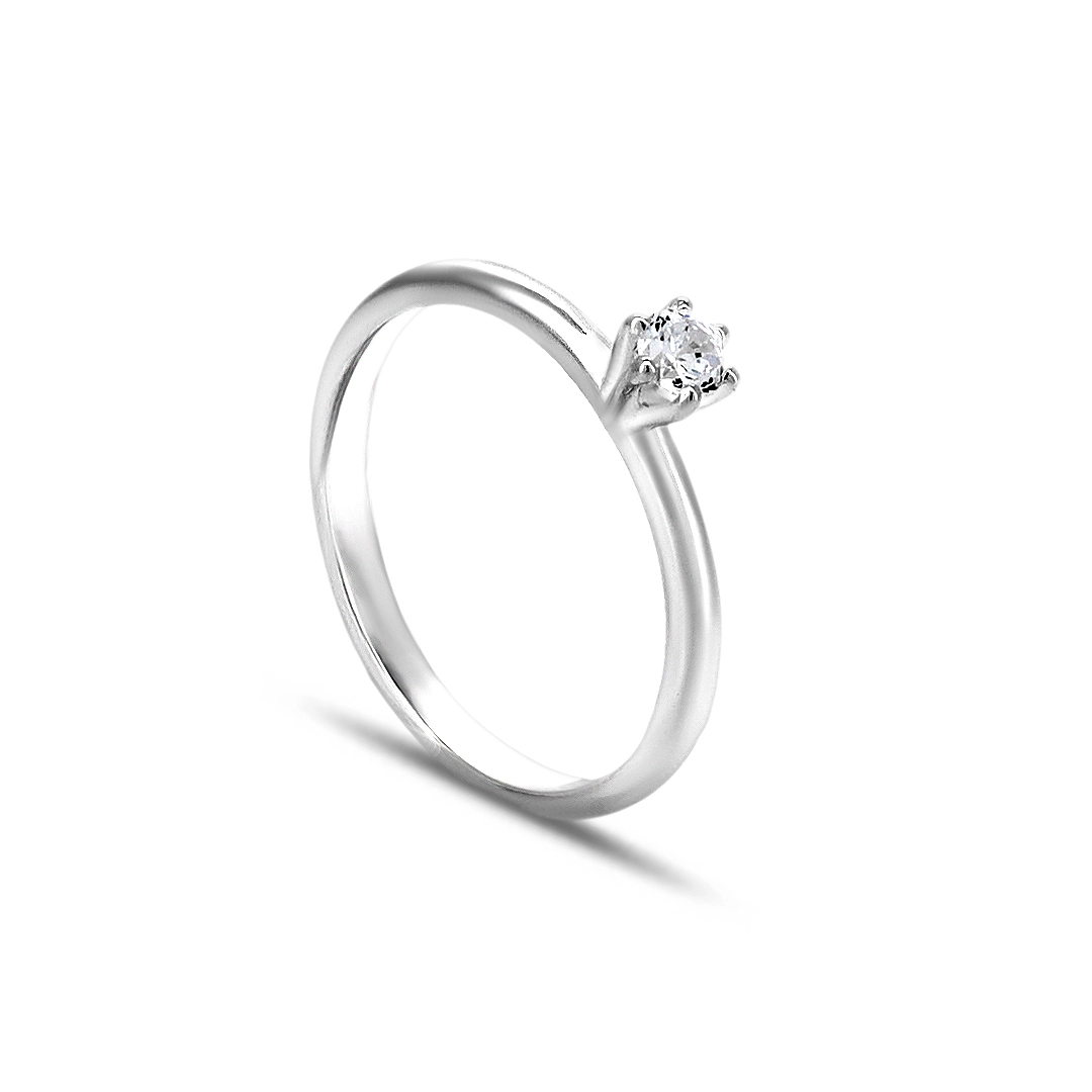 - Anel De Prata Solitário Delicado Com Zircônia Cristal