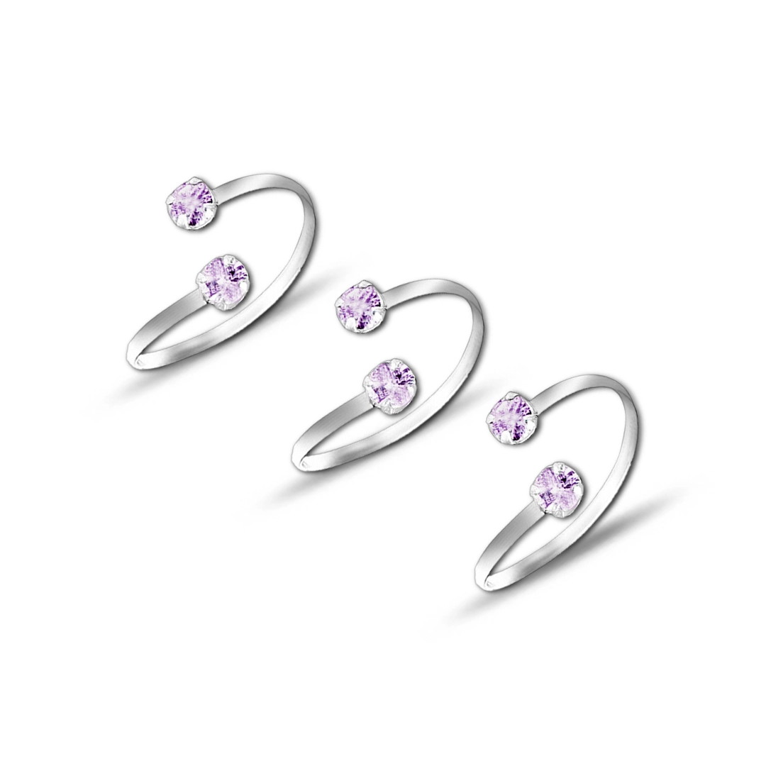 Kit De Anéis De Prata Ponto Luz Com Zircônia Lavanda
