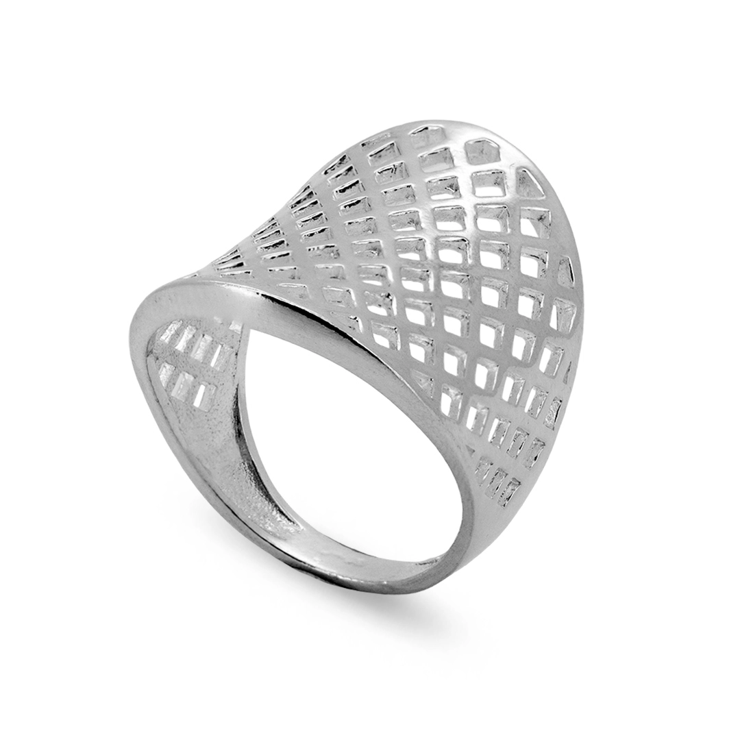 - Anel De Prata Trabalhado Vazado