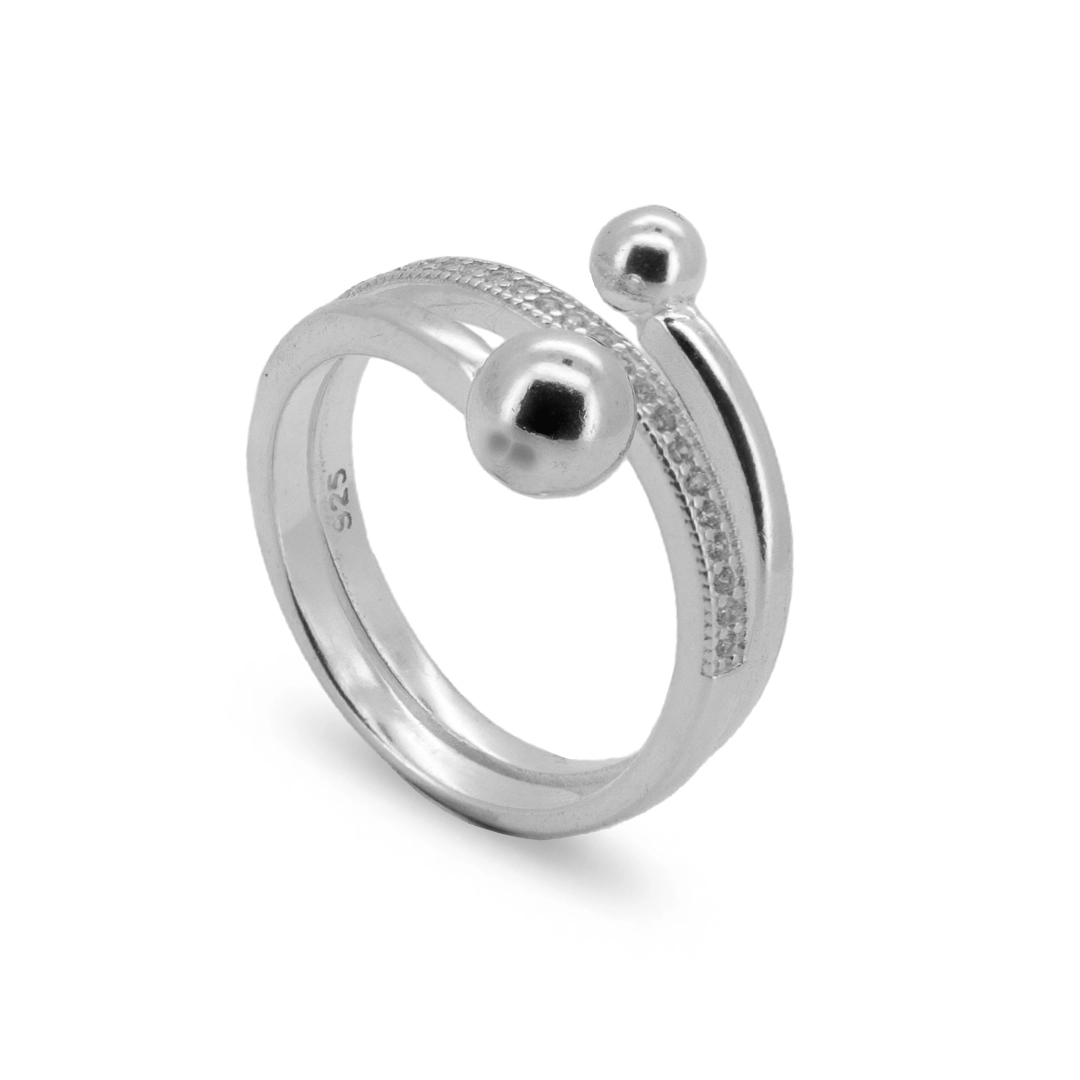 - Anel De Prata Triplo Com Esfera Espelhada E Zircônia Cristal