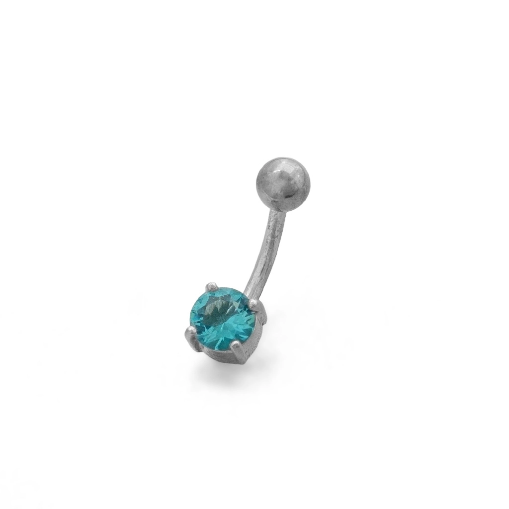 Piercing de Aço e Prata com Zircônia Água Marinha Redonda