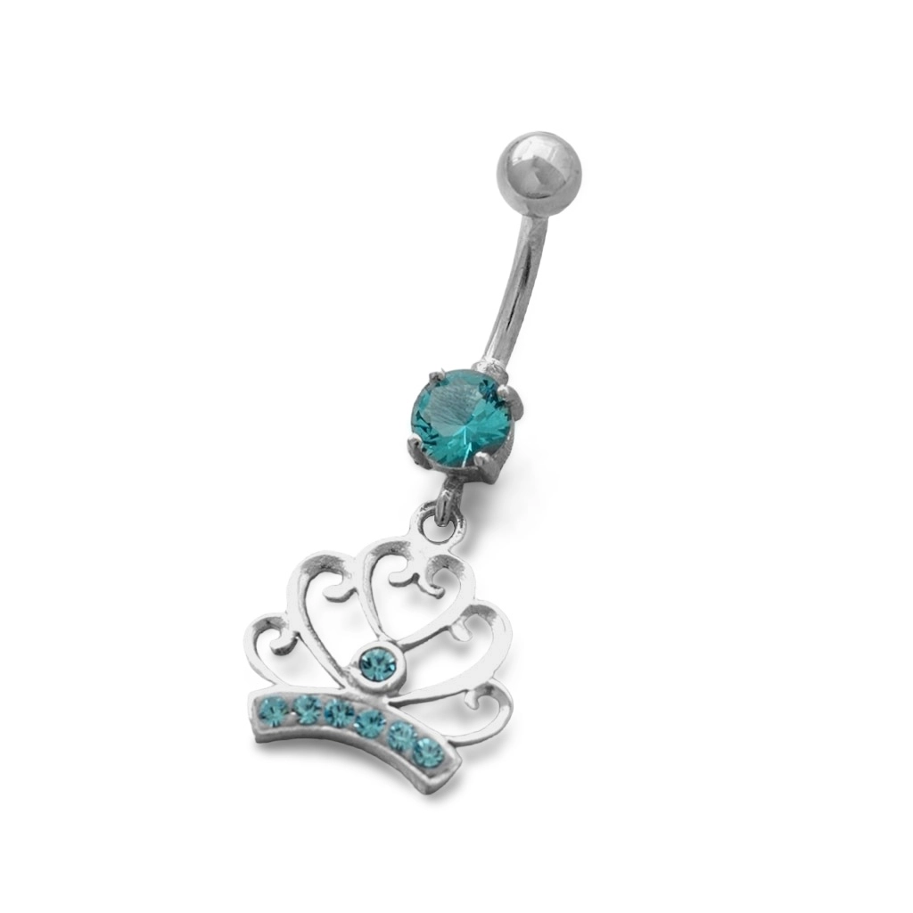 Piercing de Aço e Prata Coroa com Zircônia Àgua Marinha