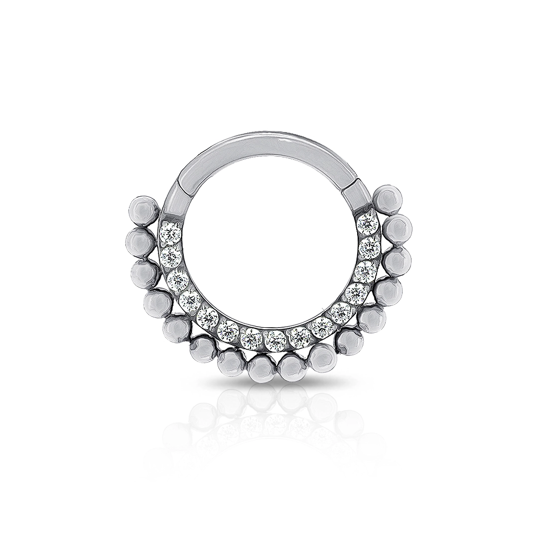 Argola com zircônias cristal e esferas para utilizar em piercings.