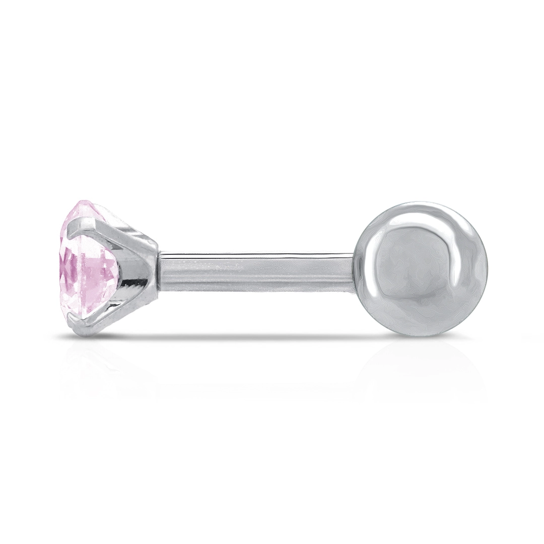 Piercing De Titanium Com Esfera e Zircônia Rosa