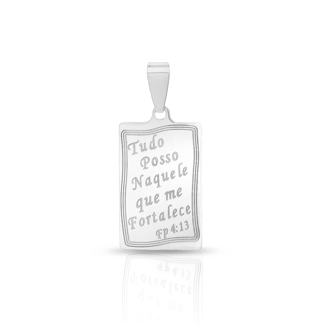 Pingente de Aço placa retangular com escrita.