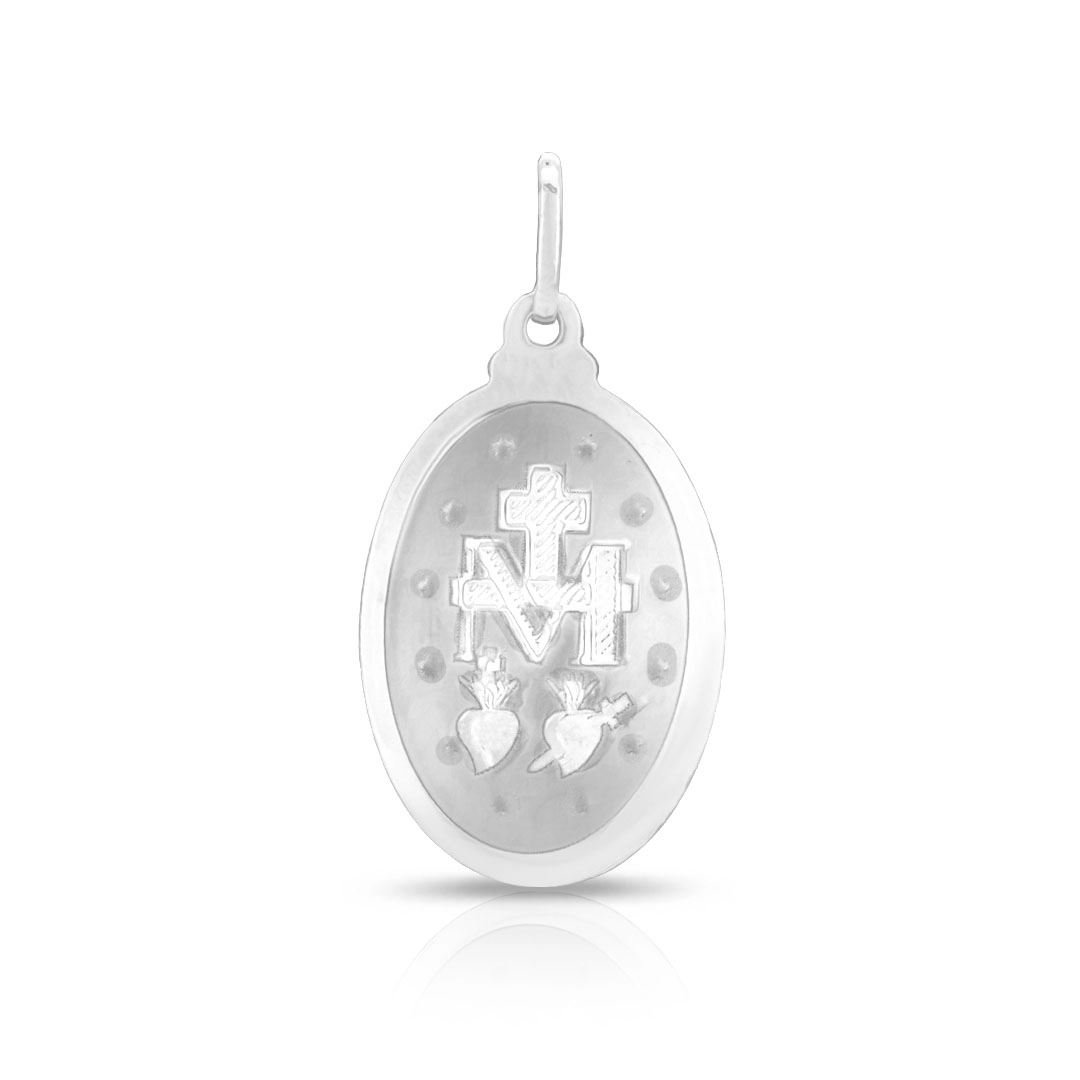 Pingente de aço com Nossa Senhora das Graças.
