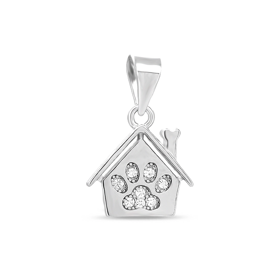 Pingente de Prata Casa Espelhada com Pata e Zircônia Cristal