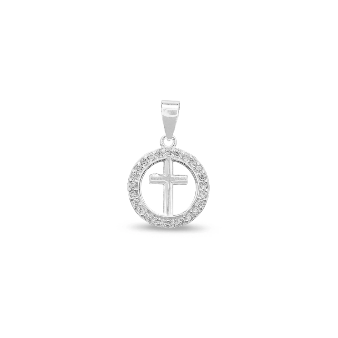 Pingente De Prata Círculo Com Cruz e Zircônia Cristal