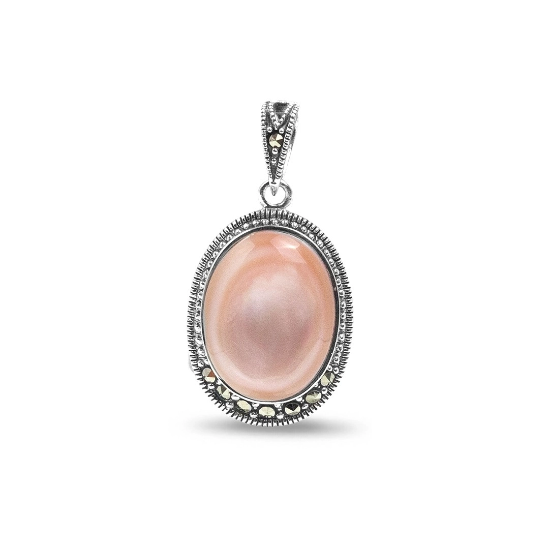 Pingente de Prata com Madrepérola Rosa Oval e Marcassitas