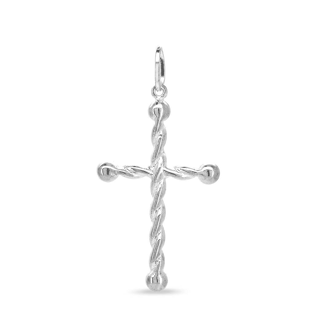 Pingente de prata em formato de cruz torcida.