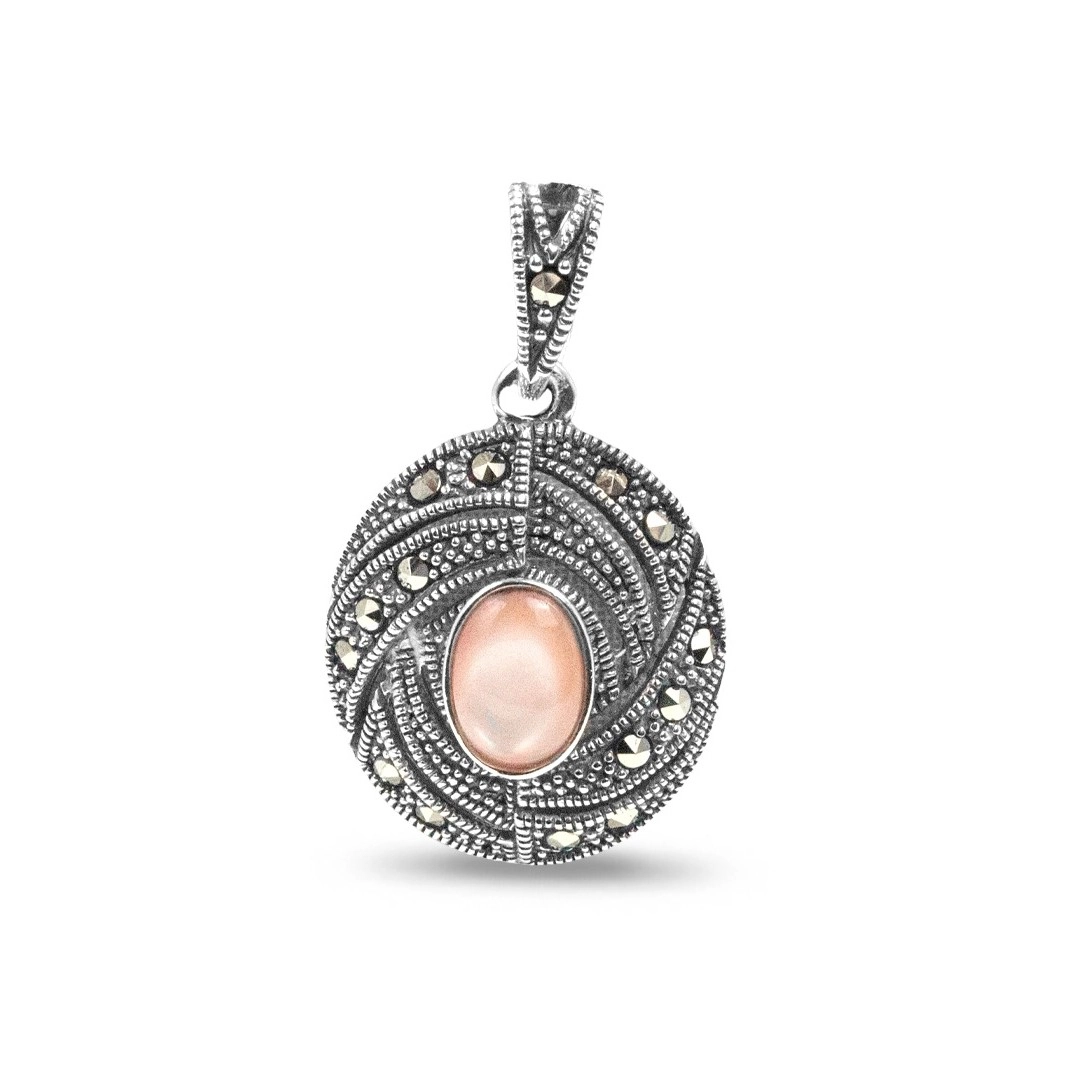 Pingente de Prata Envelhecido com Marcassitas e Madrepérola Rosa