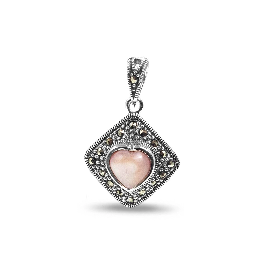 Pingente de Prata Envelhecido com Marcassitas e Madrepérola Rosa